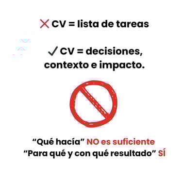 ✔️ CV = decisiones, contexto e impacto